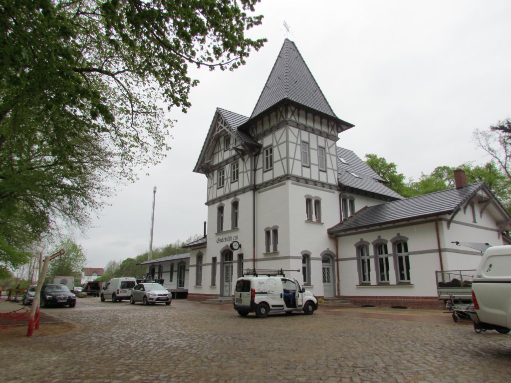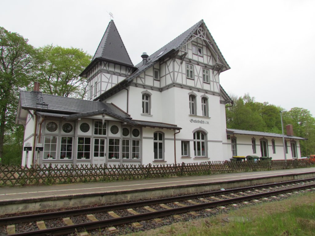 Das frisch renovierte Bahnhofsgebäude von Gadebusch am 07.05.2012 an der Strecke Schwerin - Rehna