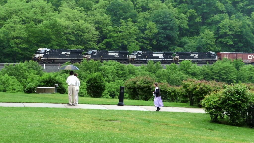 28.04.2012, der Tag der 4. Bebraer Dampftage. Geduldig warteten wieder viele Dampflok-Fans auf einer Brücke bei Braunhausen auf die erste Parallelfahrt von Bebra nach Sontra. Zunächst kam aber 185 516-2 mit KLV-Zug in Richtung Norden.