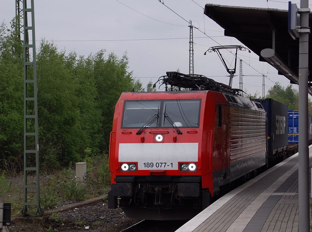 Nach dem Umhängen in Viersen Rangierbahnhof macht sich die 189 077-1 auf den Weg in Richtung Krefeld. 5.5.2012