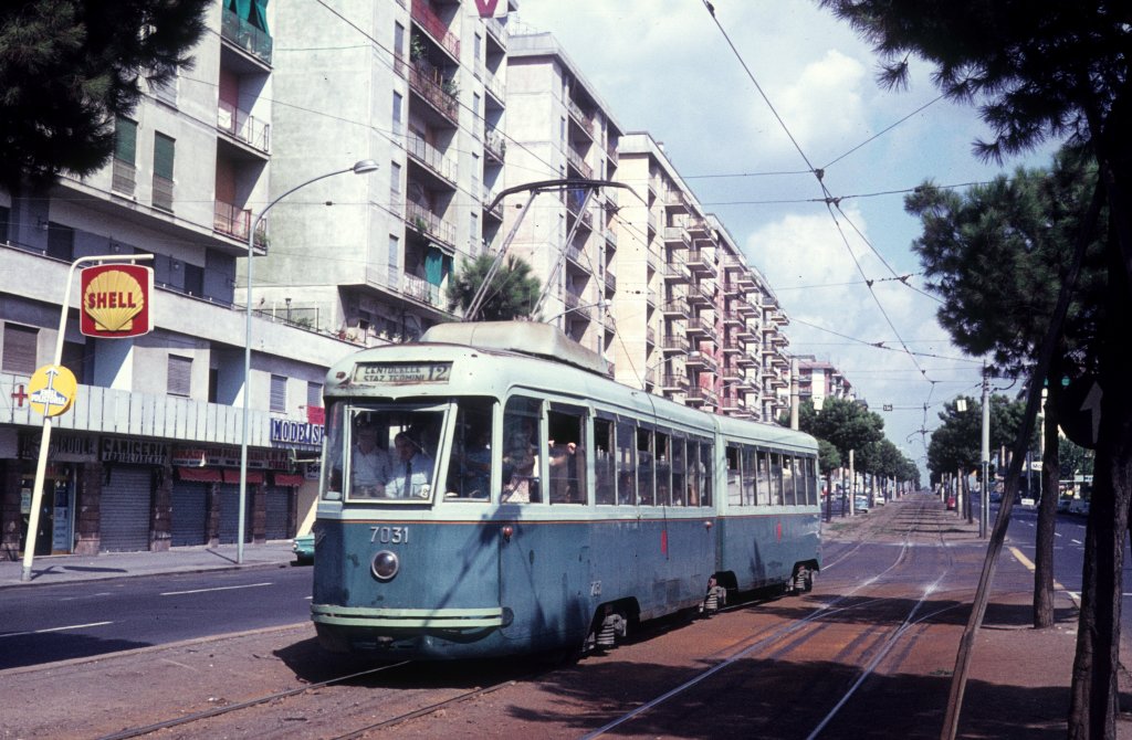 Roma / Rom ATAC Linea tranviaria / SL 12 (Stanga-TAS 7031) Via Prenestina am 24. August 1970. - Scan eines Diapositivs.
