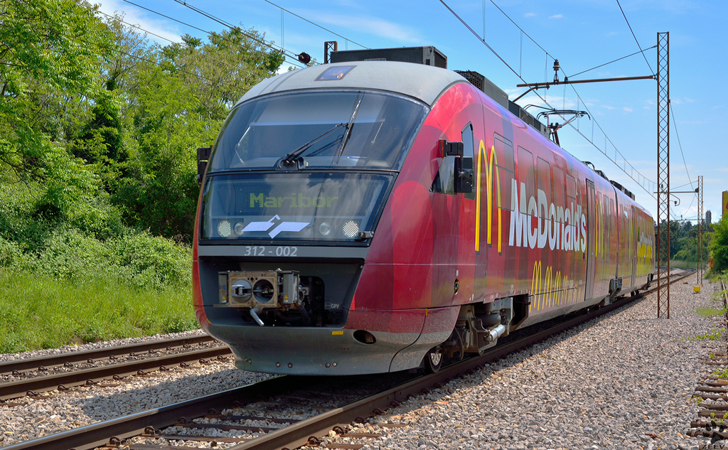 Triebwagen 7121 030 bei der Ausfahrt aus Zabok im Verlauf der Strecke Zagreb-Varazdin / 03.06.2012.