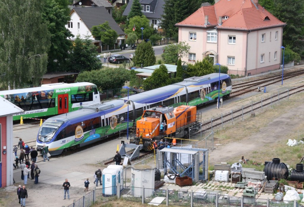 Im Bahnhof Markersbach gab es einen Fotohalt, 17.05.2012.