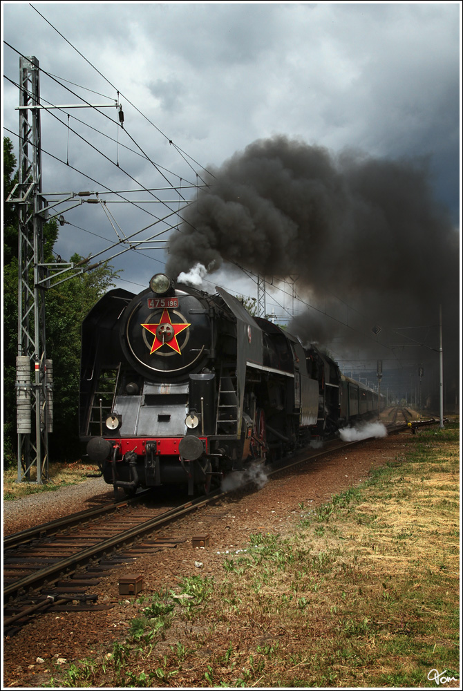 Zwischen 1. und 3. Juni fanden in Vrútky die Kindertage 2012 statt. Aus diesem Anlass wurden von und nach Vrútky zahlreiche Sonderzüge in Verkehr gesetzt. Den Anfang machten am 1.6.2012  475 196 und 475 179 mit ihrem Sonderzug Os 31207 von  Vrútky über Zvolen retour nach Vrútky. Die Aufnahme zeigt den Zug bei der Ausfahrt aus Vrútky.