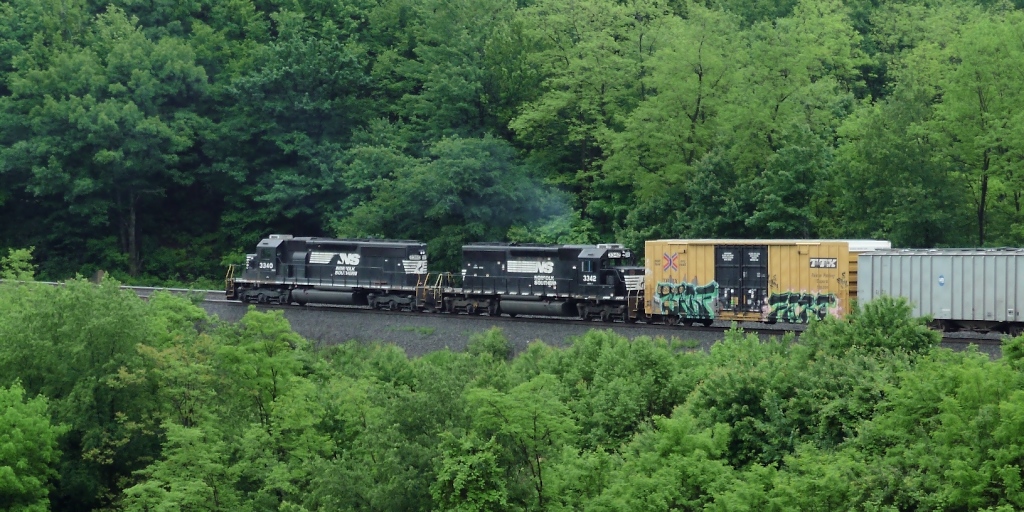 Am letzten Tag (3.6.2012) wurde anlässlich der Kindertage in Vrútky speziell für autoverfolgende Fotografen ein Fotogüterzug von Vrútky nach Kremnické Bane in Verkehr gesetzt. Bespannt wurde Sv 31219 mit 556 036 als Zuglok und 555 3008 als Vorspann. Die Aufnahme zeigt den Zug kurz vor Horná ¦tubňa.
