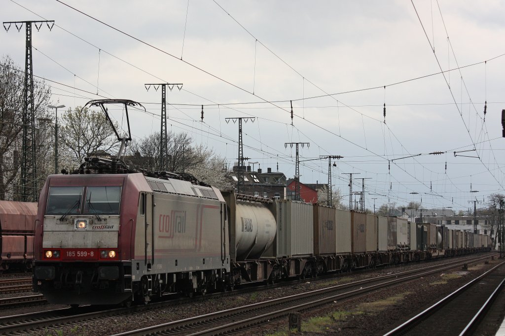Crossrail 185 599 am 7.4.12 bei der Durchfahrt durch Köln-West.