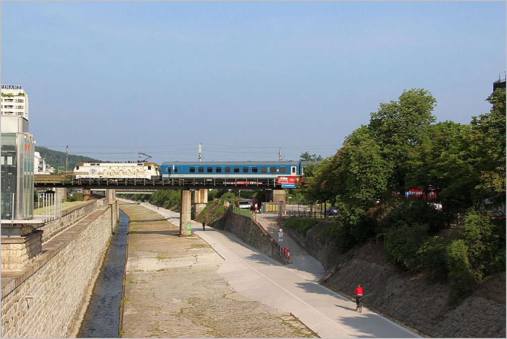 Zwischen 1. und 3. Juni fanden in Vrútky die Kindertage 2012 statt. Aus diesem Anlass wurden von und nach Vrútky zahlreiche Sonderzüge in Verkehr gesetzt. Am 2. Tag fuhr 475 179 als ´SR Osobitný Os 31214 von ´ilina nach Vrútky, hier nahe Strečno mit der Burg Strečno im Hintergrund. 2.6.2012