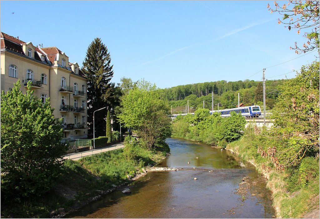Auf der Brücke. Eine Züricher S-Bahn auf der Rheinbrücke bei Eglisau. Oktober 2011.