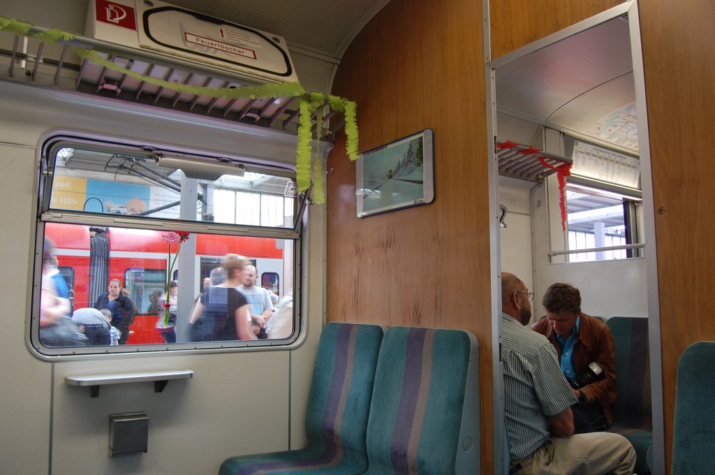 ET 420 001 am 2. Juni 2012 im Münchner Hauptbahnhof zum Jubiläum 40 Jahre S-Bahn München. Blick aus dem Fahrgastraum.