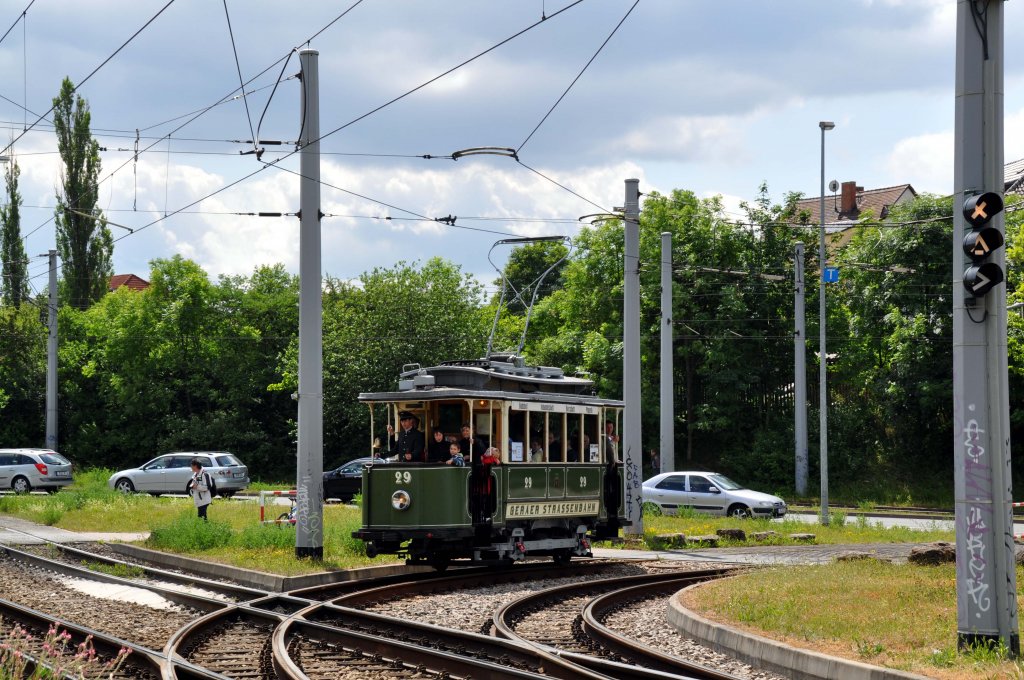 TW 509 fährt bald nach Schönau. Straßenbahnmuseum Chemnitz den 02.06.2012. Das Haltestellen-Schild müsste auch mal gerichtet werden.