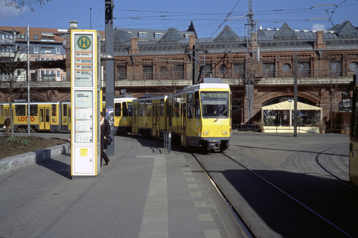 Berlin Tw 218 050 mit Bw 268 085 in der Lindenstraße mit dem Ziel Köpenick, 10.10.1991.