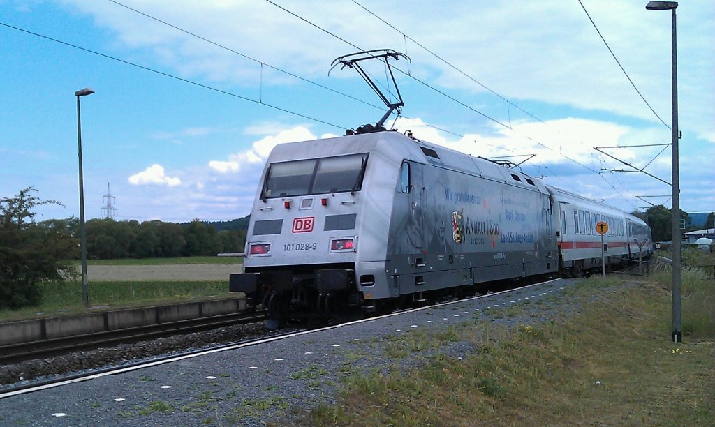 101 028-9 "800 Jahre Sachen-Anhalt" mit dem IC 2049 von Köln Hbf nach Leipzig Hbf in Demker. 09.06.2012