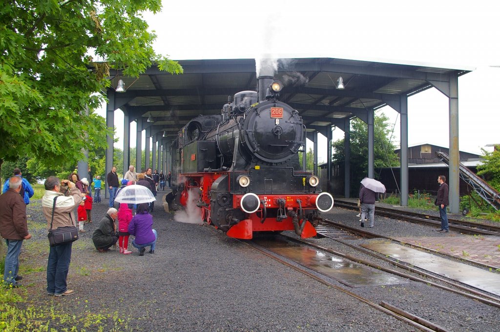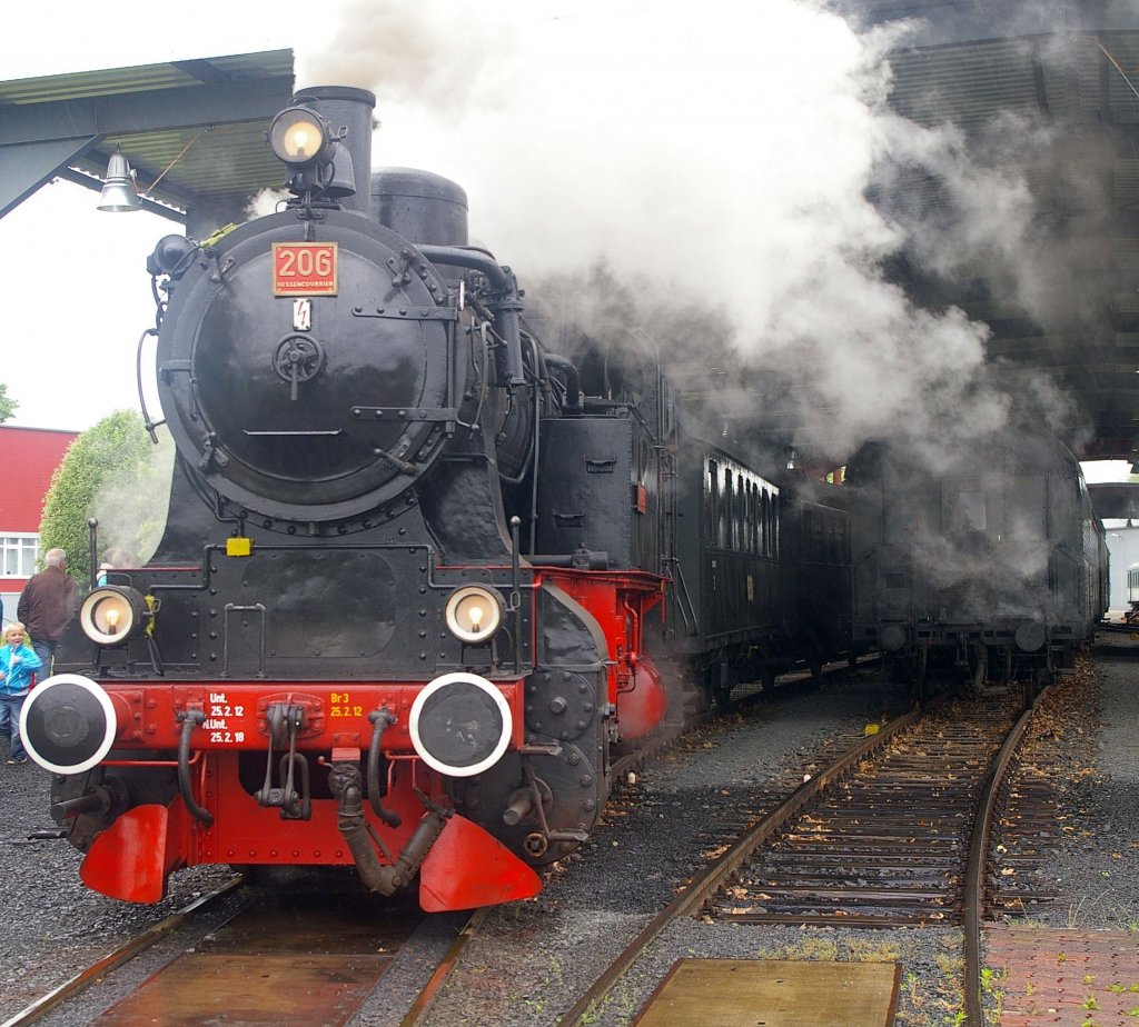 Für den Hessencourier am 7.6.2012 im Einsatz, die Dampflok 206.Manche Dampflok-Fans konnten nicht nahe genug dabei sein.