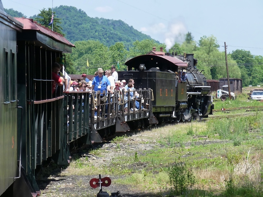 Einfahrt in Orbisonia Station, rechts der EBT-Triebwagen M-1(6.6.09).