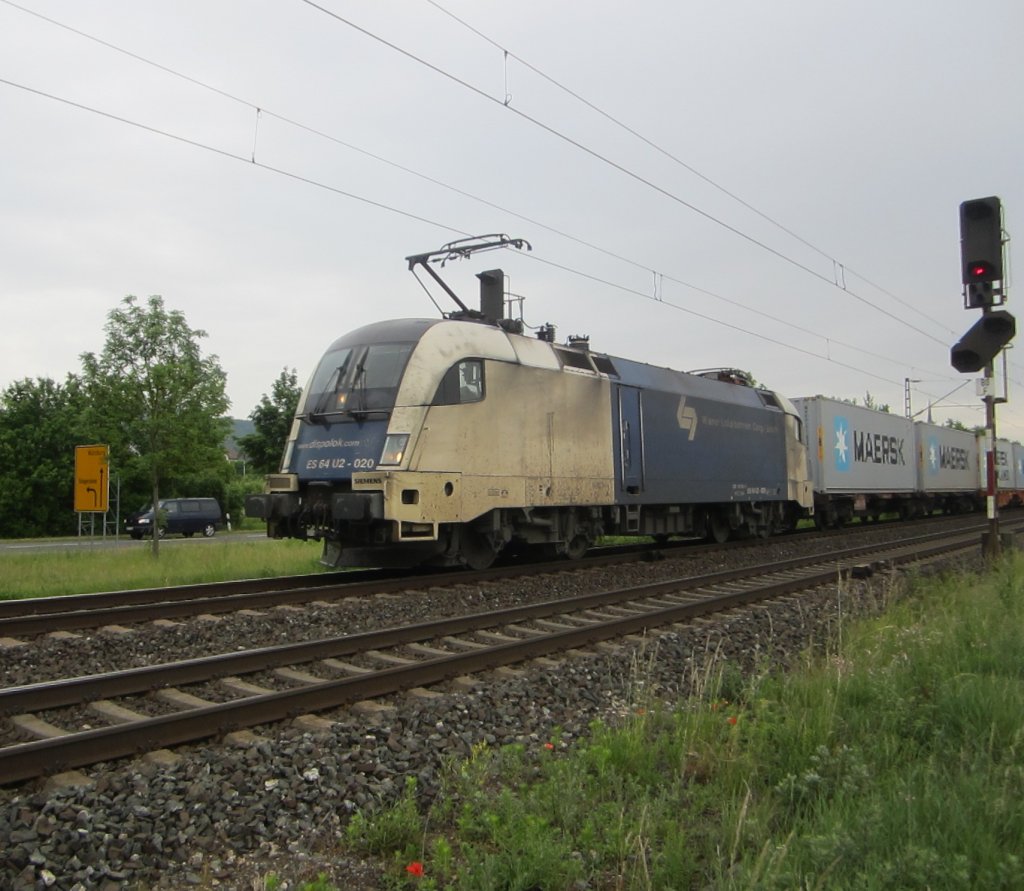 Eine MRCE ES 64 F4 zieht am 09.06.'12 einen Containerzug ostwärts durch Emmerke