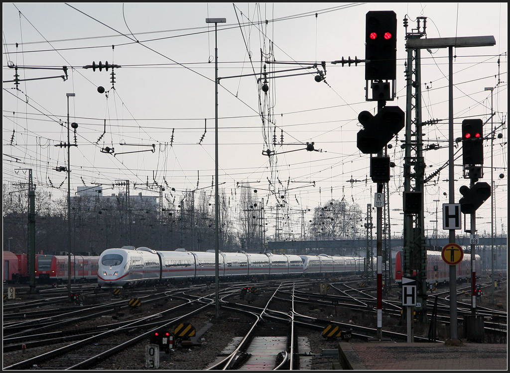 Die Ruhe vor dem Sturm. In wenigen Minuten werden mehrere ICEs einfahren und neues Leben in den Bahnnhof bringen. (Mannheim,25.01.12)