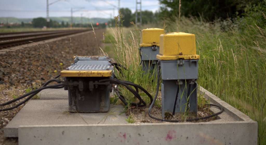 Kabelkästen an einer Trennstelle in der Nassau an der Strecke