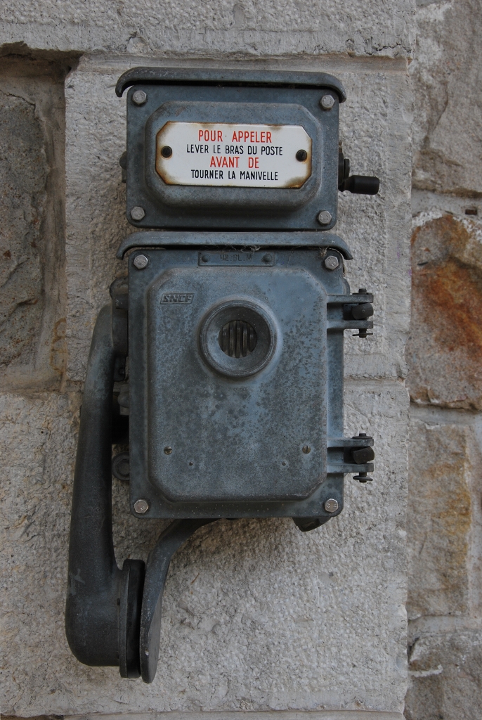 Telefonapparat mit SNCF-Aufschrift, fotografiert im Bahnhof von Saint-Jean du Gard am 24. August 2011.