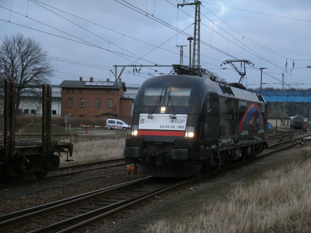 Der EGP Taurus ES64U2-002,am 21.März 2012,unterwegs in Bergen/Rügen.