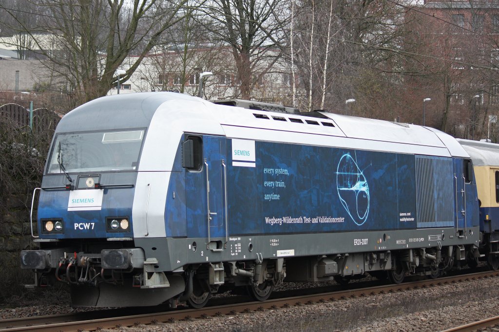 Die für ECTS werbende MRCE ES 64 F4-115 (i.E. DB Autozug) fuhr am 11.3.12 durch Düsseldorf-Derendorf.