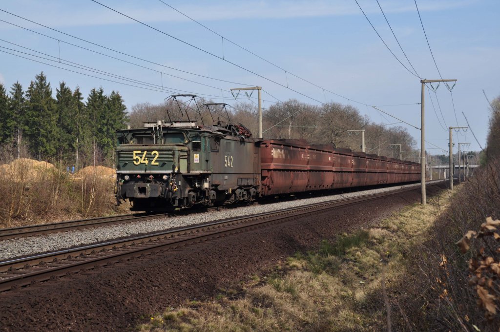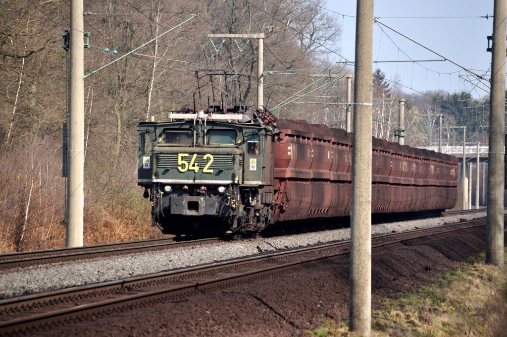 Lok 542 bei Kerpen/Buir in Richtung Tagebaugebiet Hambach (24.03.2012)