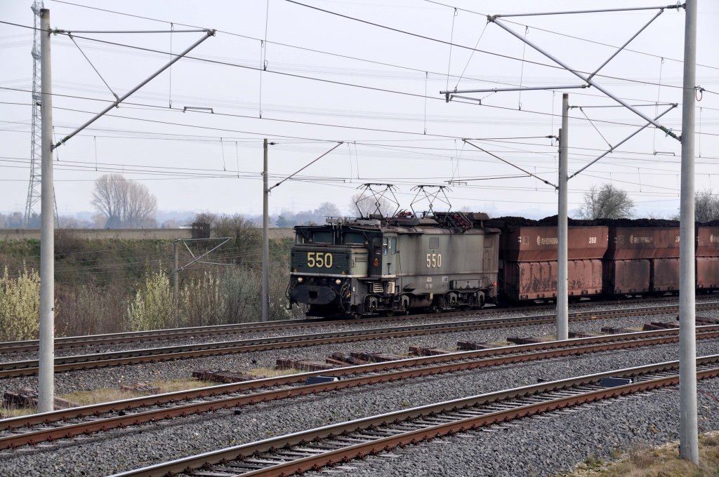 Lok 550 am Kohlekraftwerk Neurath auf dem Weg auf das Kraftwerksgelände zum Kohle abladen (24.03.2012).