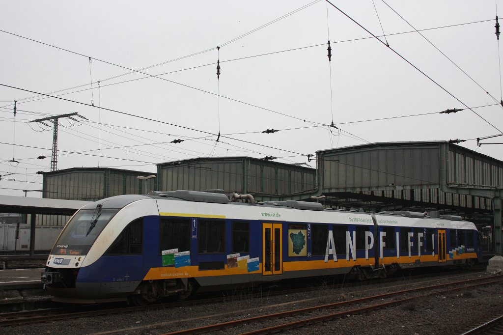 NWB VT 571 bzw. VT 648 440 "ANPFIFF" am 17.3.12 bei der Abfahrt in Duisburg Hbf.