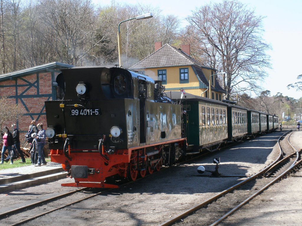 99 4011 hat,am 19.April 2011 den Bahnhof Göhren erreicht der zu der Zeit noch die Kiesbettung hatte inzwischen sind dort die Gleise geschottert.