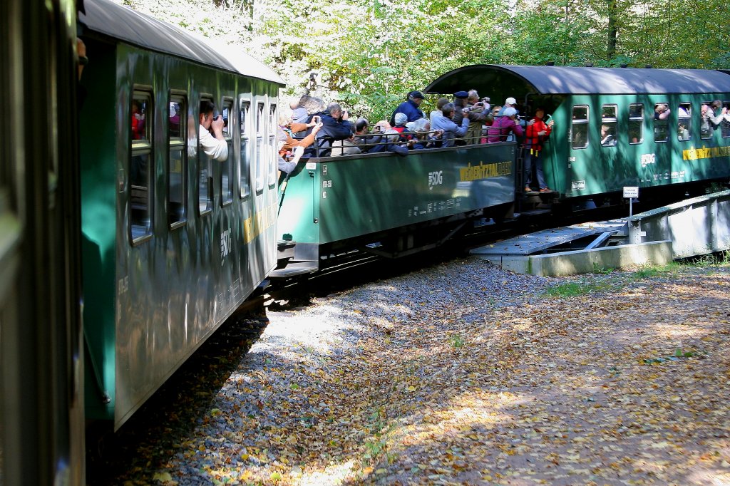 Heißer Kampf um die besten Foto-Plätze im Aussichtswagen! Ein Wunder, dass das Gefährt nicht umkippt!! ;-) Die Aufnahme entstand am Mittag des 09.10.2010 zwischen Freital-Coßmannsdorf und Rabenau im Rabenauer Grund.