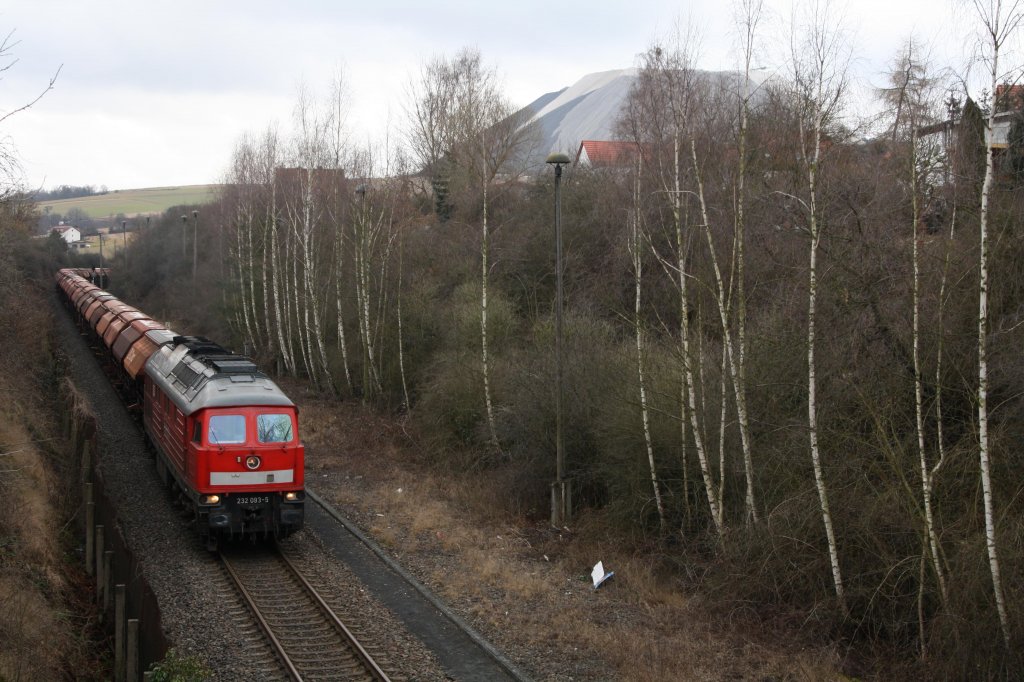 In Dankmarshausen wurde 232 093-5 mit einem Kali-Leerzug nach Heringen/Werra am 05.03.12 abgepaßt.