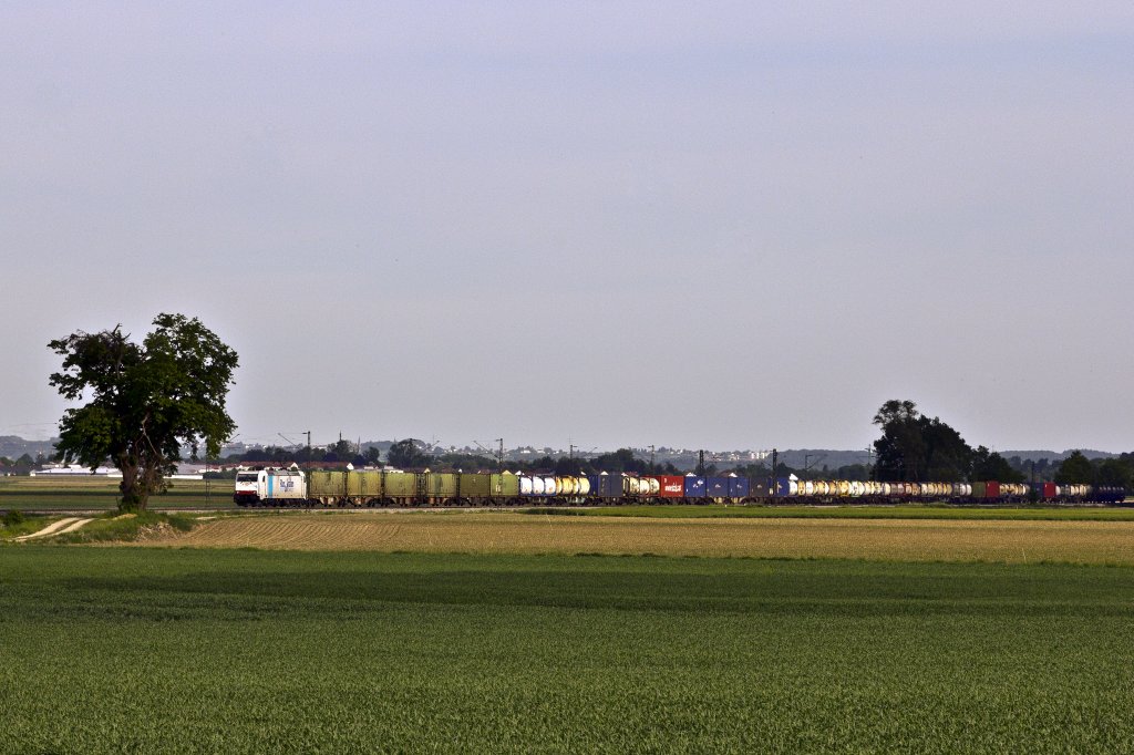 Railion 185 287 im Tullnerfeld, unterwegs Richtung St. Pölten bei Gewitterstimmung. Diese Aufnahme konnte der vom Zug ziemliche überraschte Fotograf am 12.05.2012 festhalten.
