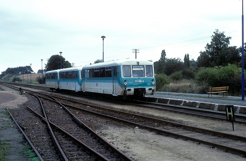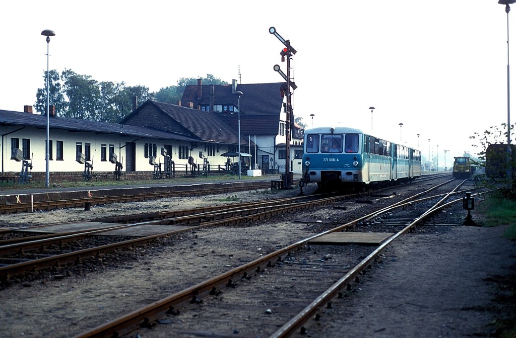 Im Bahnhof von Obergrafendorf wartet am 22.9.2010 ein Triebwagen der Reihe 5090 auf seinen nächsten Einsatz Richtung Mank (siehe kleines weißes Schild hinter Fensterscheibe)zur Zeit als die ÖBB die Strecke noch verwaltete.