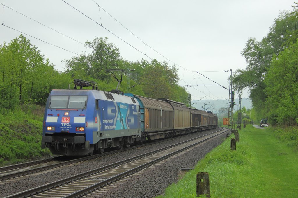 185 007 mit Aufliegern am 12.05.2012 in Köln West.
