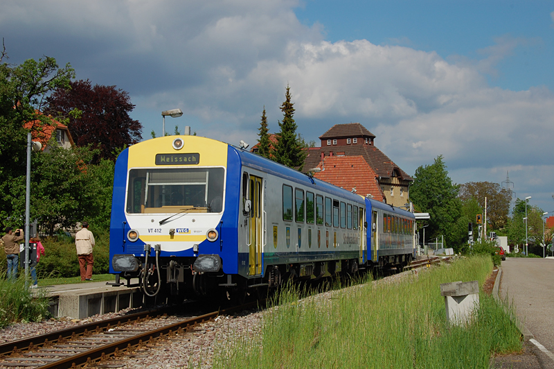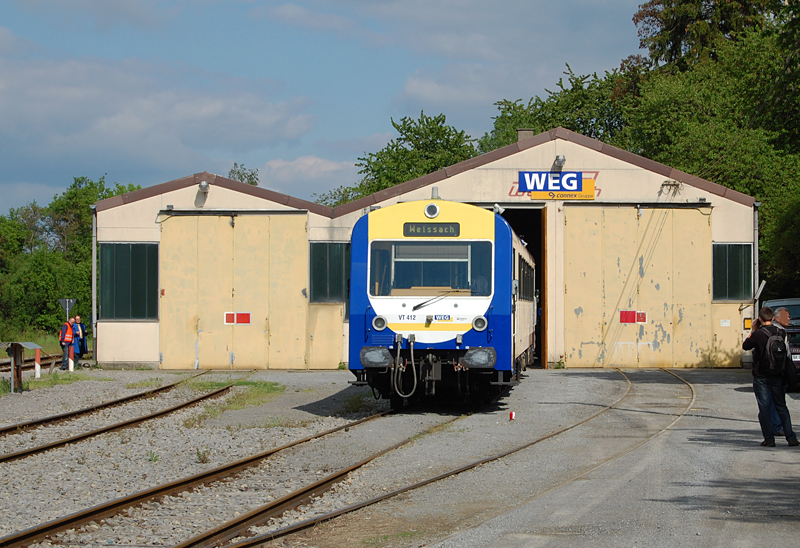 Ein seltenes Bild ergab sich am 12. Mai 2012 im Bahnhof Heimerdingen. Zwei NE 81 der WEG warten darauf, voneinander getrennt zu werden. Während der hintere für eine Übung der Rettungskräfte in Heimerdingen verbleibt, geht es für den vorderen als Sonder- bzw. Regelzug nach Weissach.