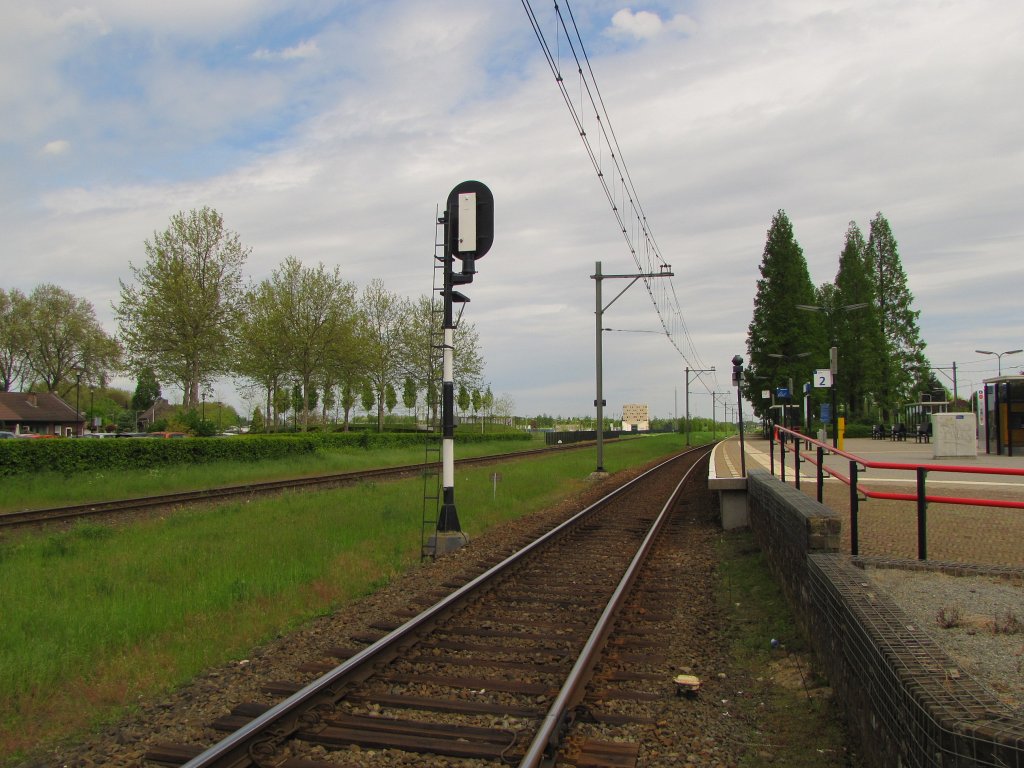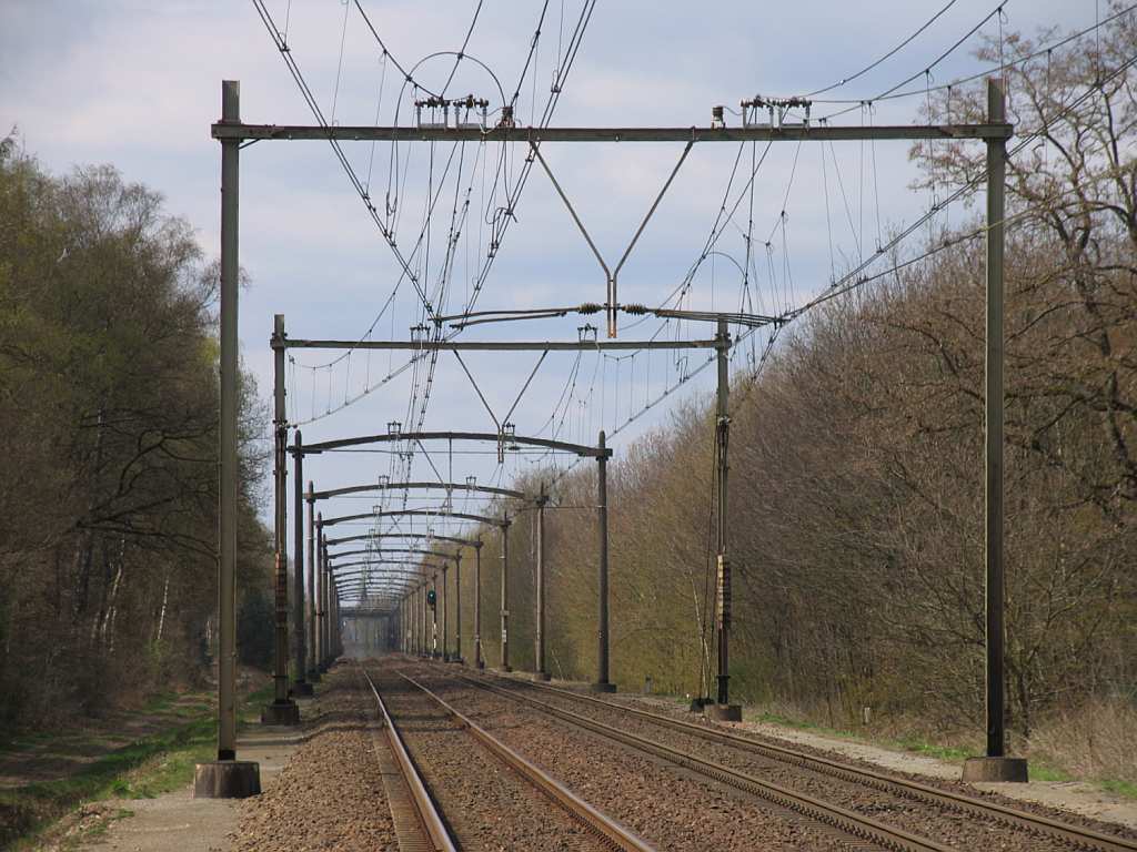 Bahnstrecke Eindhoven-Venlo in die Richtung Eindhoven bei Vlierden am 8-4-2012.