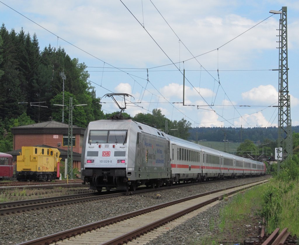Endlich erstmals in voller Pracht gesehen! 101 042-0 mit IC Richtung Bebra. Aufgenommen am 21.04.2012 in Mecklar.