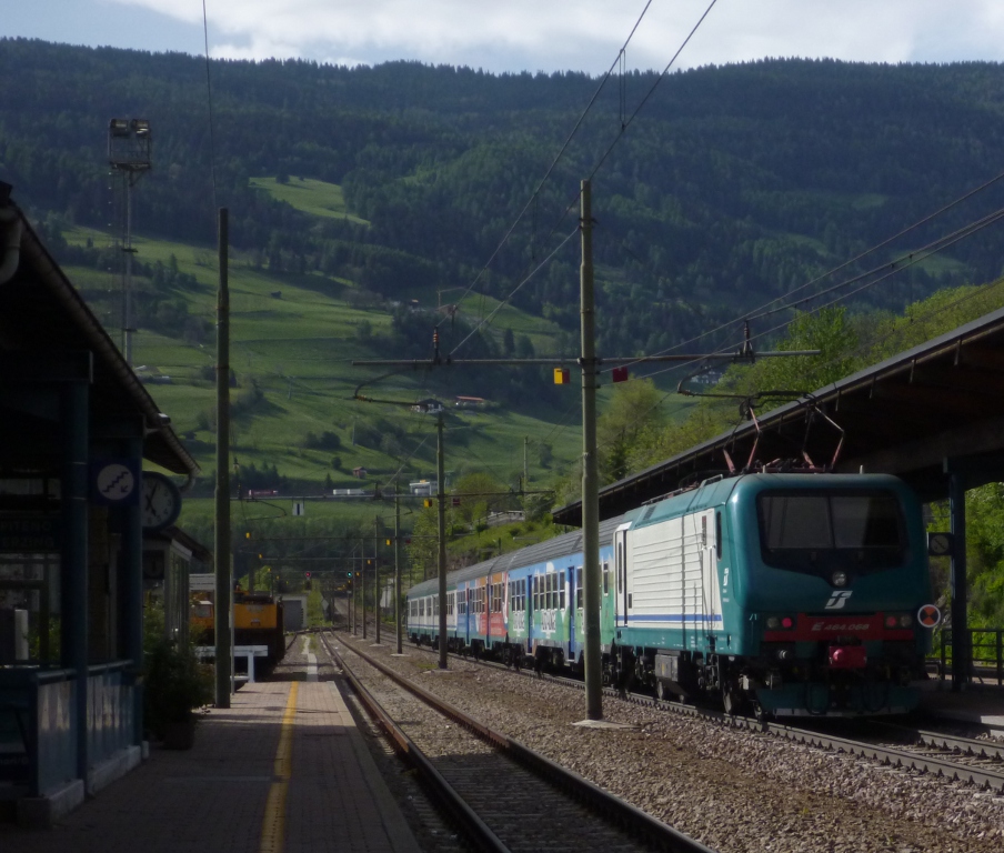 464-068 verläßt Sterzing, indem sie ihren Regionalzug auf den Brenner schiebt. Mai 2012 kHds