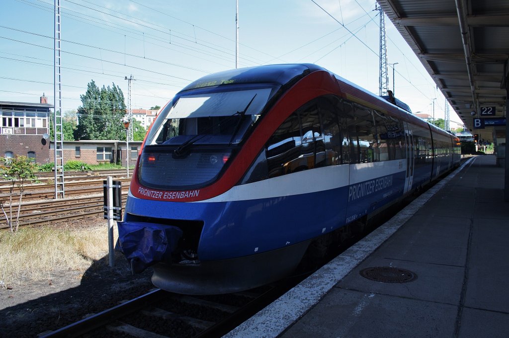 VT Talent 0009 der OLA Neubrandenburg in den Abendstunden im Bahnhof von Laage nach Rostock HBF am 25.05.2012