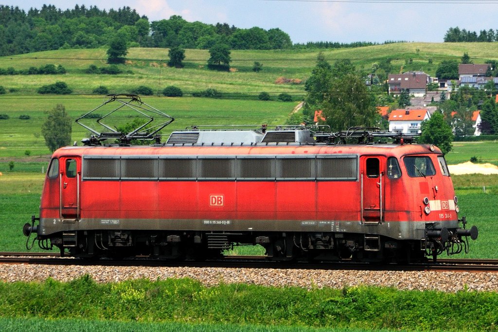 Beim Warten auf eine weitere ganz besondere Lok erwischt: 115 346-9 der DB AutoZug GmbH im Lokportrait auf Solofahrt Richtung Augsburg an der KBS 980 bei Konzenberg. (28.05.2012).