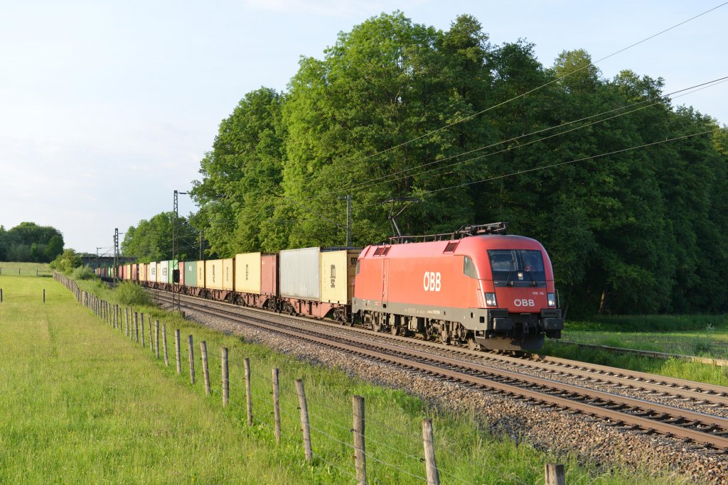 Die 185 344 mit einem Güterzug am 17.04.2012 unterwegs bei Pleinting.