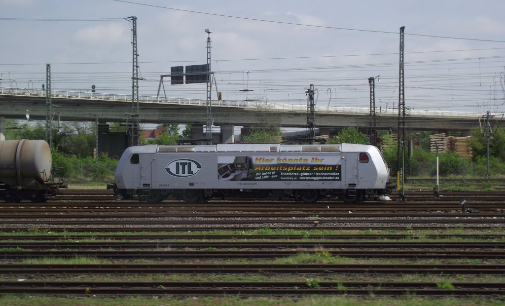 185 548 "Hier könnte ihr Arbeitsplatz sein" von ITL steht am 1. Mai 2012 im Hanauer Gbf abgestellt.