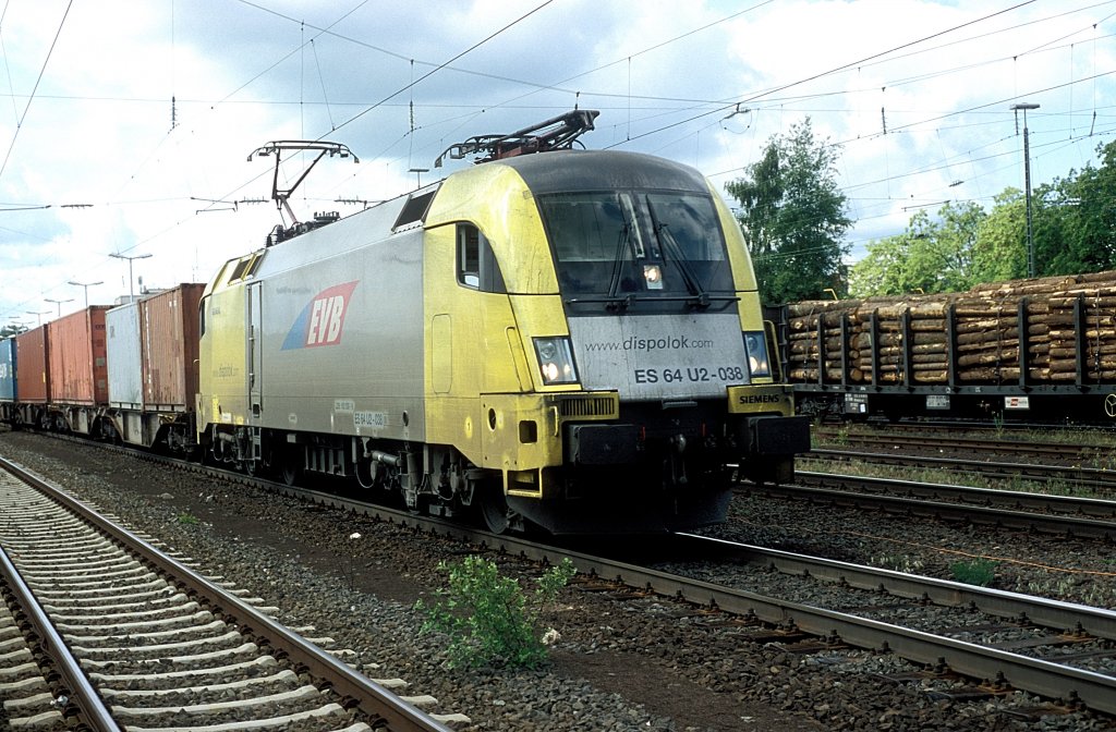 MRCE ES 64 U2-004 war am 2.4.12 für HXK Schulungsfahrten unterwegs.Aufgenommen bei einen kleinen Halt in Düsseldorf Hbf.