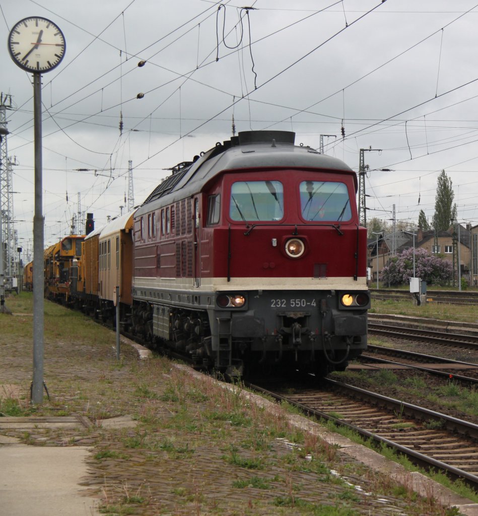 Am 05.05.2012 fuhr 232 550 mit einem Bauzug durch Stendal in Richtung Magdeburg.