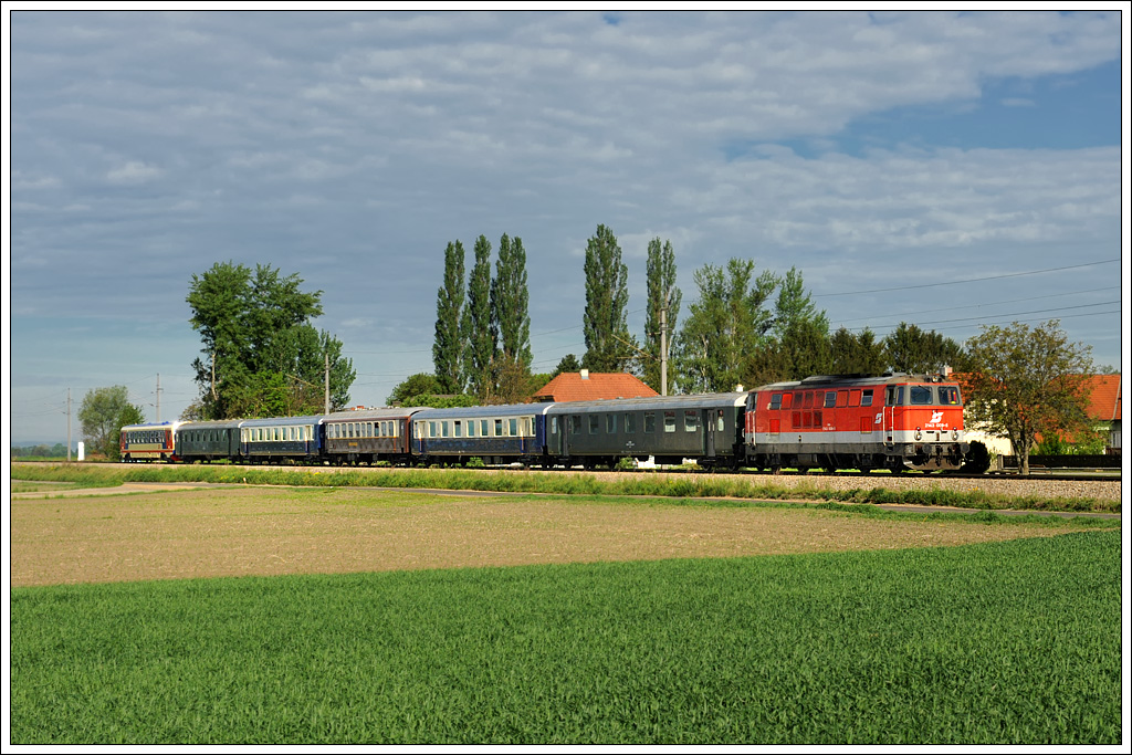 Anstatt der grünen 2143 040 bespannte am 6.5.2012 2143 009 den Sonderzug 14676 von Wien Fjb über Tulln nach Ernstbrunn. Die Aufnahme zeigt den Zug in Gaisruck.