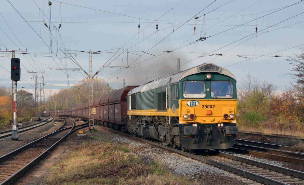 29002 beförderte am 10.11.12 einen Kohlezug aus Profen durch Leipzig-Thekla Richtung Engelsdorf.