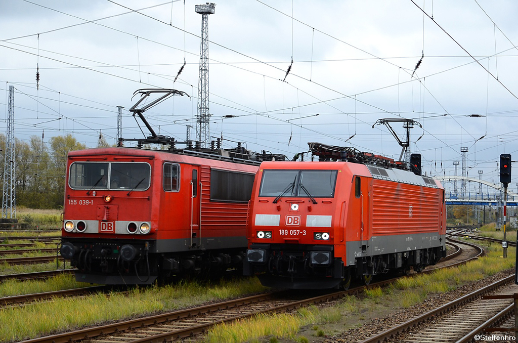 am 05.11.12 konnten im Rostocker Seehafen die 189 057 für den KLV nach Verona und die 155 039 mit Schadwagenzug nach Eberswalde aufgenommen werden.
