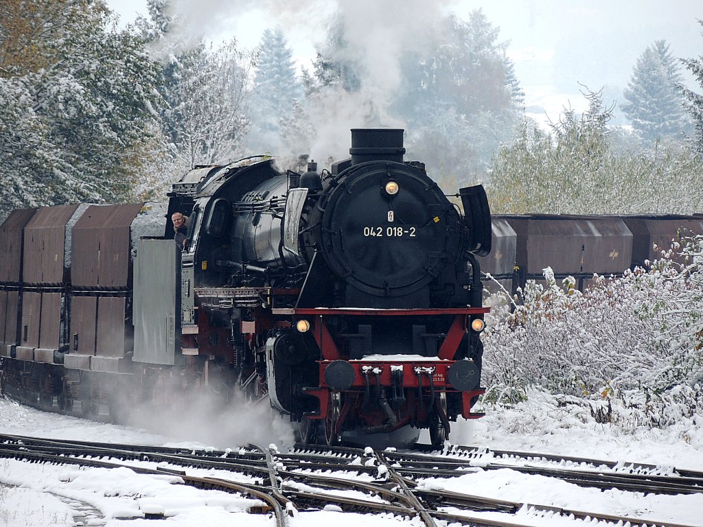 Nachdem 06-018 in der Nacht von 9. auf 10.11.2012 unter Dampf war, legte Rudi noch einmal ordentlich nach, um das Feuer bis zum nächsten Tag zu halten. Glaubt es mir, die Borsig ist hungrig. 5 m2 Meter Rost müssen erst einmal befüllt werden. Ganze 5 Minuten schaufelte er Kohle in die Feuerbüchse.