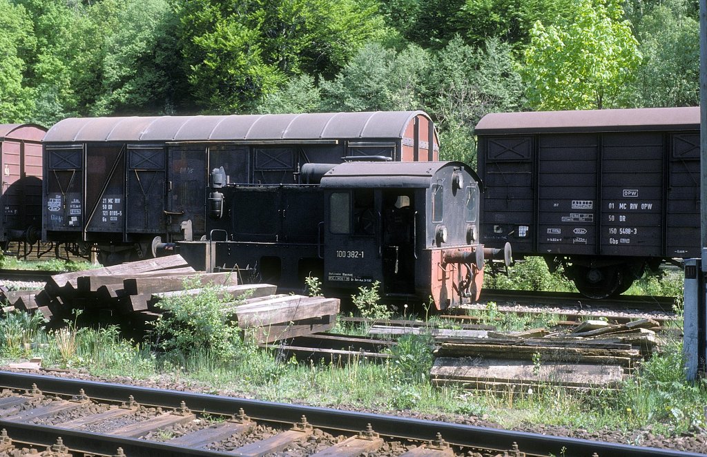 Werklok V 60 (Ost), LEW Baujahr 1979 befährt das Werksgleis von der ZPR zum Bahnhof Blankenstein. Das Gleis links gehört zur Strecke Blankenstein - Lobenstein.