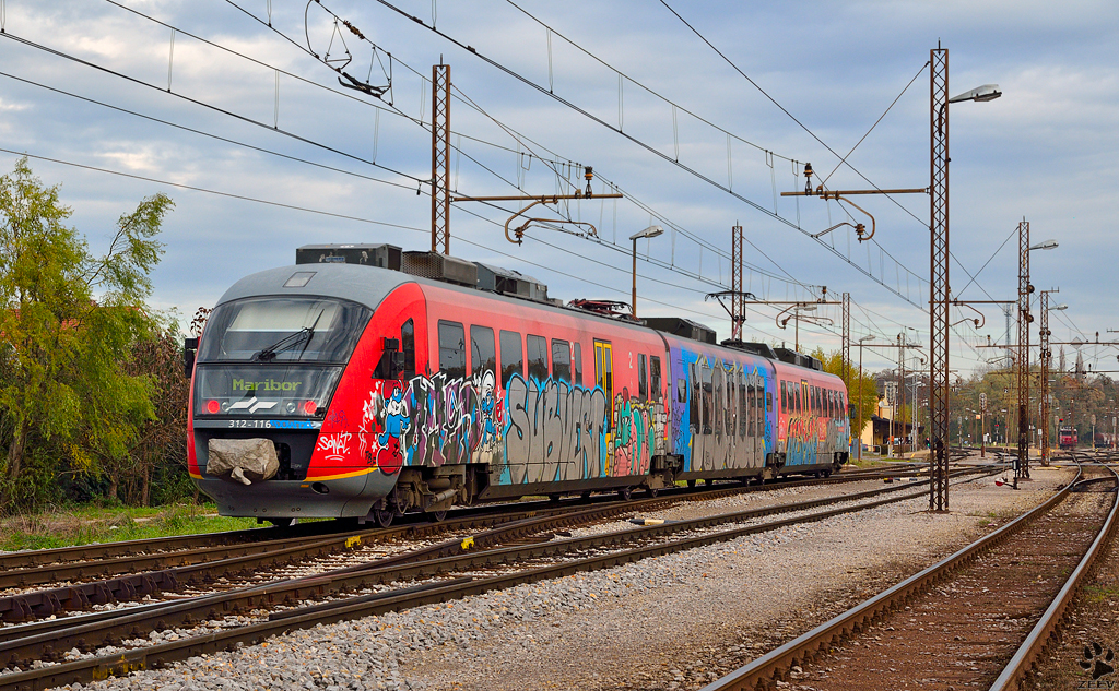 S´ 312-116 fährt durch Pragersko Richtung Maribor Hauptbahnhof. /9.11.2012