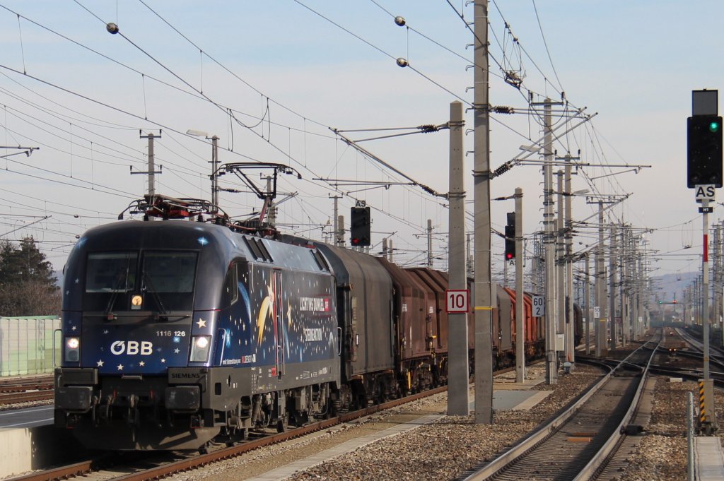 1116 126 Licht ins Dunkel mit einem Güterzug durch den Bahnhof Sankt Pölten Hauptbahnhof (Pb); am 10.11.2012
