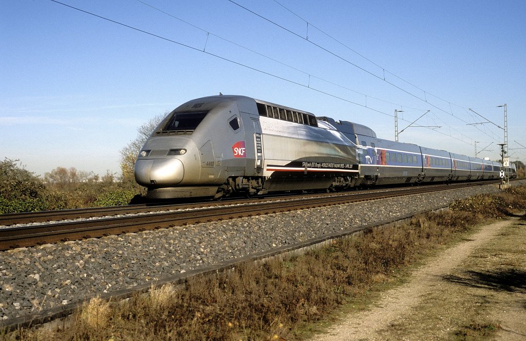 ein gewagtes ICE 3-Bild vom Münchener Hauptbahnhof-Vorfeld, gesehen von der Hackerbrücke aus.